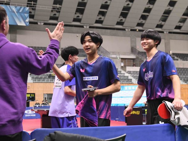 男子ダブルスは愛工大名電高&愛知工業大から4ペアがベスト8へ。連覇狙う飯村悠太/木方圭介は辛勝で5回戦を突破