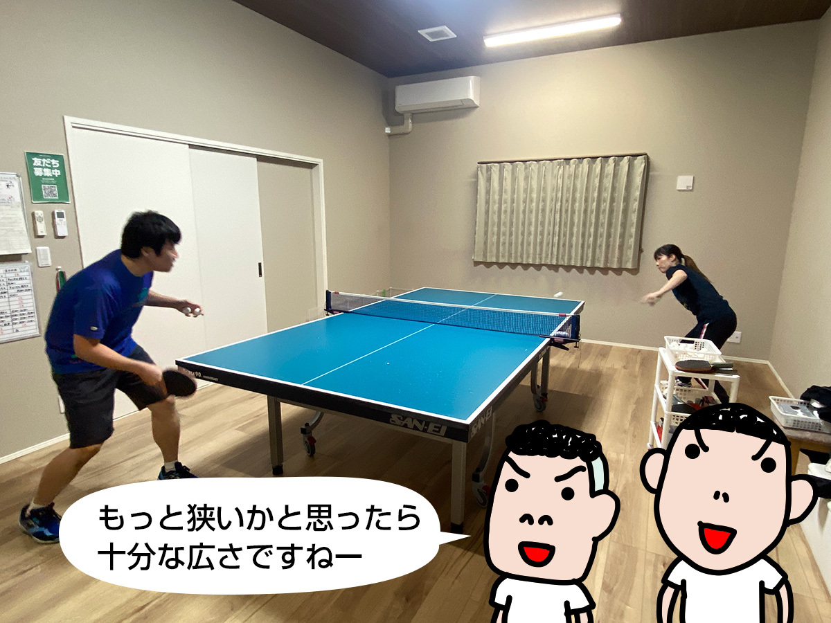 今回は、ご自宅の方での体験レッスンに、特別にご夫婦一緒にコーチングしていただくことになりました。僕が到着した時は、ちょうど前のレッスンが終わったばかりで、3名ほどのご婦人たちと入れ替わり。人気のある卓球スクールのようです。ご自宅の1階に卓球スペースがあるのですが、どうしても家の中の卓球スペースとなるとちょっと狭いかな〜などと思ってしまうのですが、予想していた以上に広く驚きました。下がりまくるカットマンにはちょっと狭いかもしれませんが、通常の練習には十二分の広さがです。