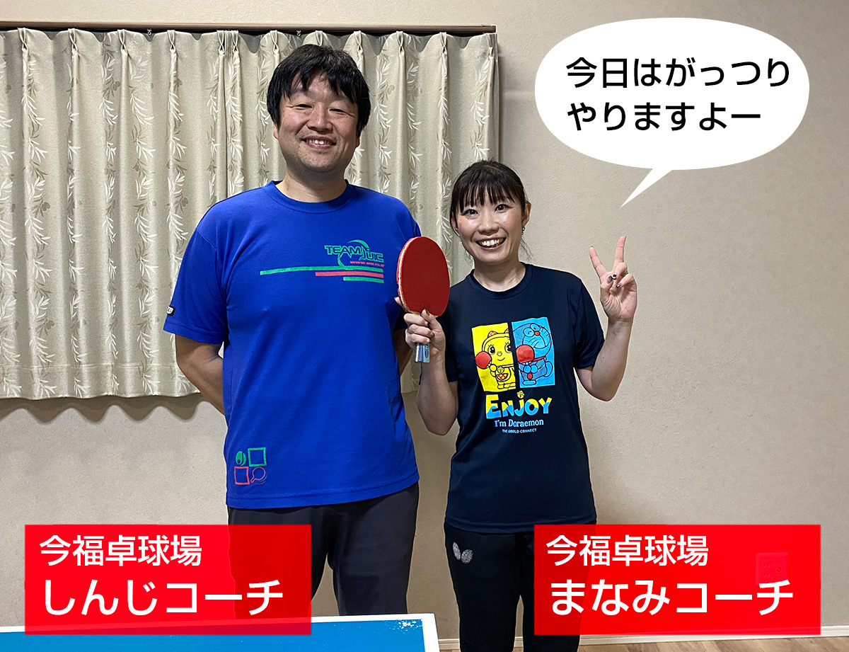 今福卓球場はご自宅にて個人・少人数の教室、近くの市民体育館にてグループレッスン、そして他のクラブにて卓球のコーチングなどをご夫婦にて行なっているそうです。