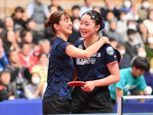 愛工大名電と中間東の一戦は大激戦に。前半に出場した中間東の浅見と玉城が、愛工大名電の佐々木、持田からそれぞれ勝利。中間東が一気に試合を決めるかと思われたが、王座奪還を目指す愛工大名電が意地を見せ、3番の月原/浅里、4番の郡司、5番の原井が立て続けに勝利。大逆転で決勝へと駒を進めた。
