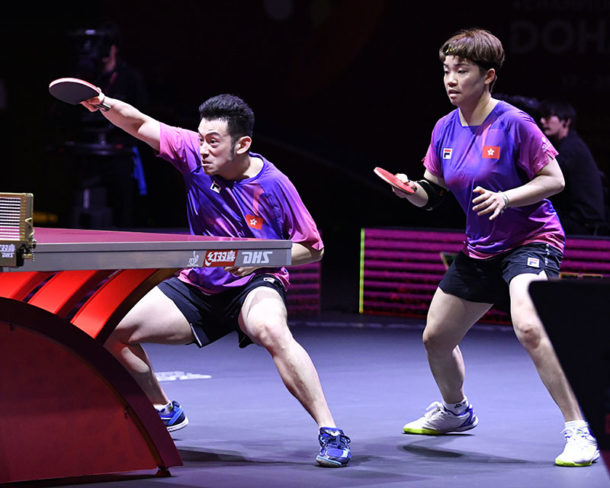 世界選手権2025ドーハも大会7日目を迎え、混合ダブルス準決勝に吉村真晴/大藤沙月が登場。対戦ペアの黄鎮廷/杜凱琹(香港)はこれまで混合ダブルスで3個のメダルを獲得し、今大会の準決勝進出で4個目のメダルを手にしたベテランペア。