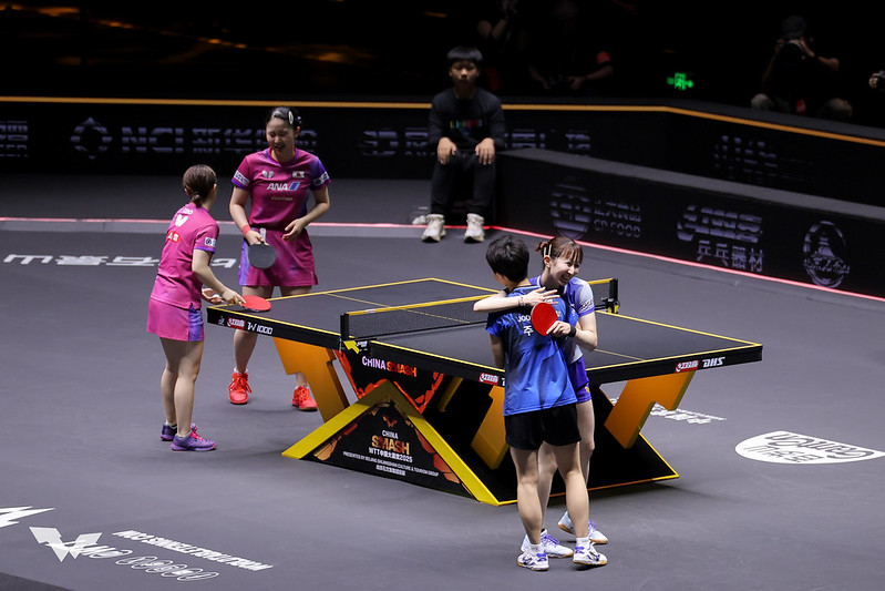 また、男子ダブルスでは、松島/戸上隼輔(井村屋グループ)がアブデルアジズ/エルベイアリ(エジプト)に3-1で勝利し、準々決勝進出。女子ダブルスでは国際ペアを含む3ペアが登場し、早田/朱芊曦(韓国)が、張本/大藤にフルゲームで勝利。長﨑美柚/申裕斌(木下アビエル神奈川/韓国)も 、縦歌曼/覃予萱(中国)に3-1で勝利し、日韓ペアの2組が8強入りを決めた。