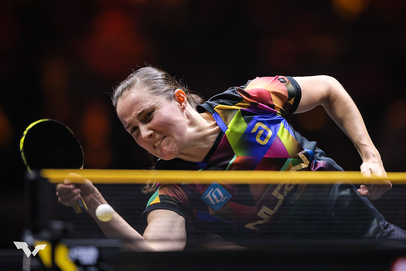 女子シングルスでは4選手が登場し、伊藤美誠(スターツ)は朱芊曦(韓国)に1-3で敗れ、2回戦敗退。一方、大藤沙月(ミキハウス)はパヴァデ(フランス)、早田ひな(日本生命)は葉伊恬(チャイニーズタイペイ)にそれぞれ3-0で快勝し、3回戦進出。張本美和は、今年からバック面を裏ソフトからアンチに変更したヴィンター(ドイツ)に苦心の勝利。2-1で迎えた4ゲーム目は6-9から相手のフォアサイドを効果的に突いて逆転。最後はヴィンターのロングサービスを渾身のバックドライブで打ち抜いて勝負を決めた。