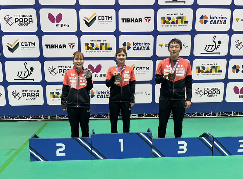 去る10月3〜7日にブラジル・サンパウロで行われた「ITTFワールドパラエリート サンパウロ2025」。クラス11に出場した日本選手は、男子シングルスで竹守彪が3位に入り、女子シングルスで古川佳奈美・山口美也・伊藤槙紀の3選手が1・2・3位と上位を独占した。日本選手の詳しい記録は以下の通り。