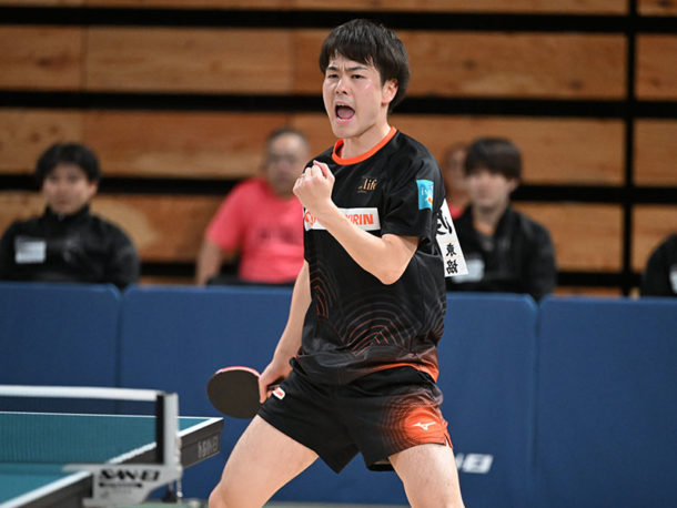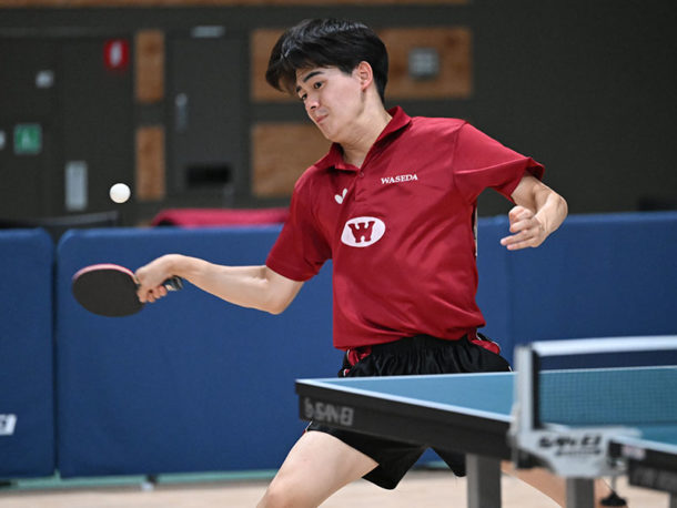 実業団チームが上位を占める中で健闘したのがインカレ2位の早稲田大。予選グループでシチズン時計を破って1位で通過すると、準々決勝で関西卓球アカデミーとの激闘を制した。