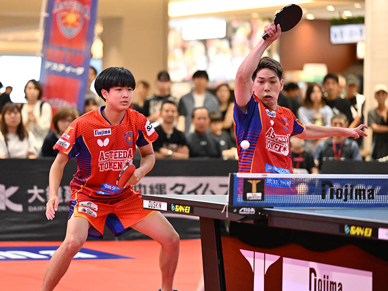 8月のホームゲームに続きサンエー浦添西海岸パルコシティで試合を行った琉球アスティーダは、18日のT.T彩たま戦には1-3で敗れたが19日の金沢ポート戦には3-1で勝利。T.T彩たま戦では、1番ダブルスは勝利はならなかったが沖縄出身の上江洲光志と坂井雄飛がペアで出場、4番では坂井が今シーズンのシングルス初勝利を地元で上げた。