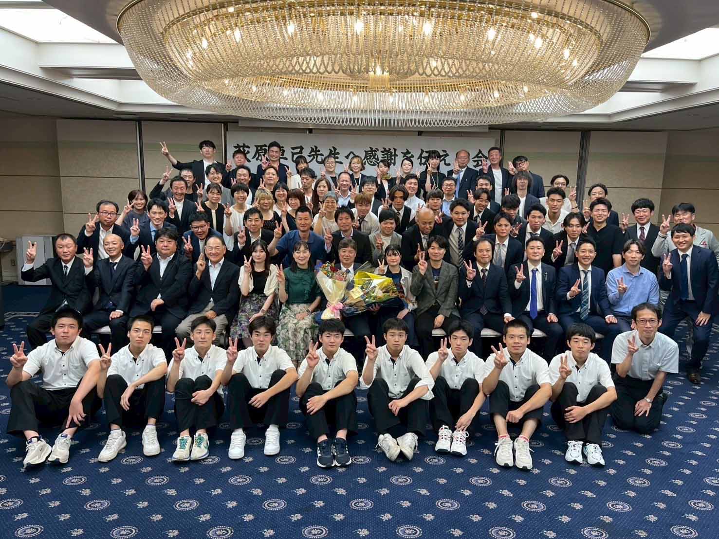 9月14日に岡山・玉野光南高と倉敷工業高卓球部のOBが「萩原卓己先生へ感謝を伝える会」を開催。両校で監督として卓球部を指導し、昨年度をもって教員を定年退職した萩原さんの長年の取り組みを労った。