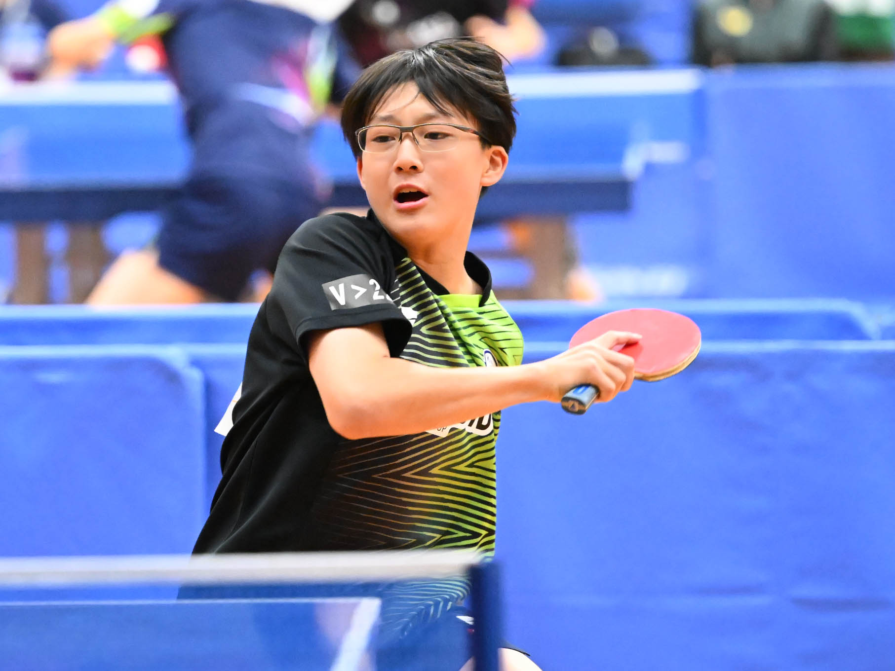 1年生にして全中シングルスで頂点に立った村松も強さを見せて5回戦進出、小林は4回戦で昨年3位の真田晴羽(トップおとめピンポンズ名古屋)をフルゲームジュースで破った。