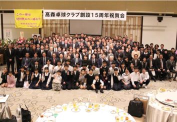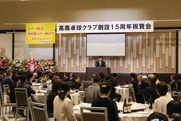 去る10月25日、福岡県北九州市のJR九州ステーションホテル小倉に於いて、「髙森卓球クラブ創設15周年祝賀会」が開催された。髙森卓球クラブは北九州市の髙森卓球場を拠点として活動しているクラブで、祝賀会には約170名の関係者が参加し、盛大に行われた。