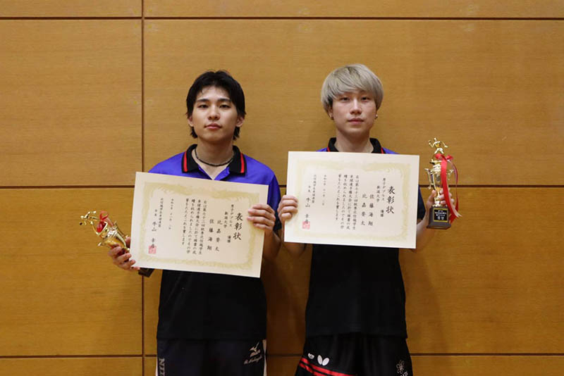 男子ダブルス優勝の佐藤海翔(右)・比嘉要太