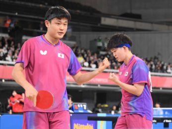今日から試合がスタートした東京2025デフリンピック卓球競技。初日の今日は混合ダブルス決勝までが行われる。9時30分から始まった1回戦に登場した灘光晋太郎/木村亜美はストレートで勝利して2回戦へと駒を進めた。