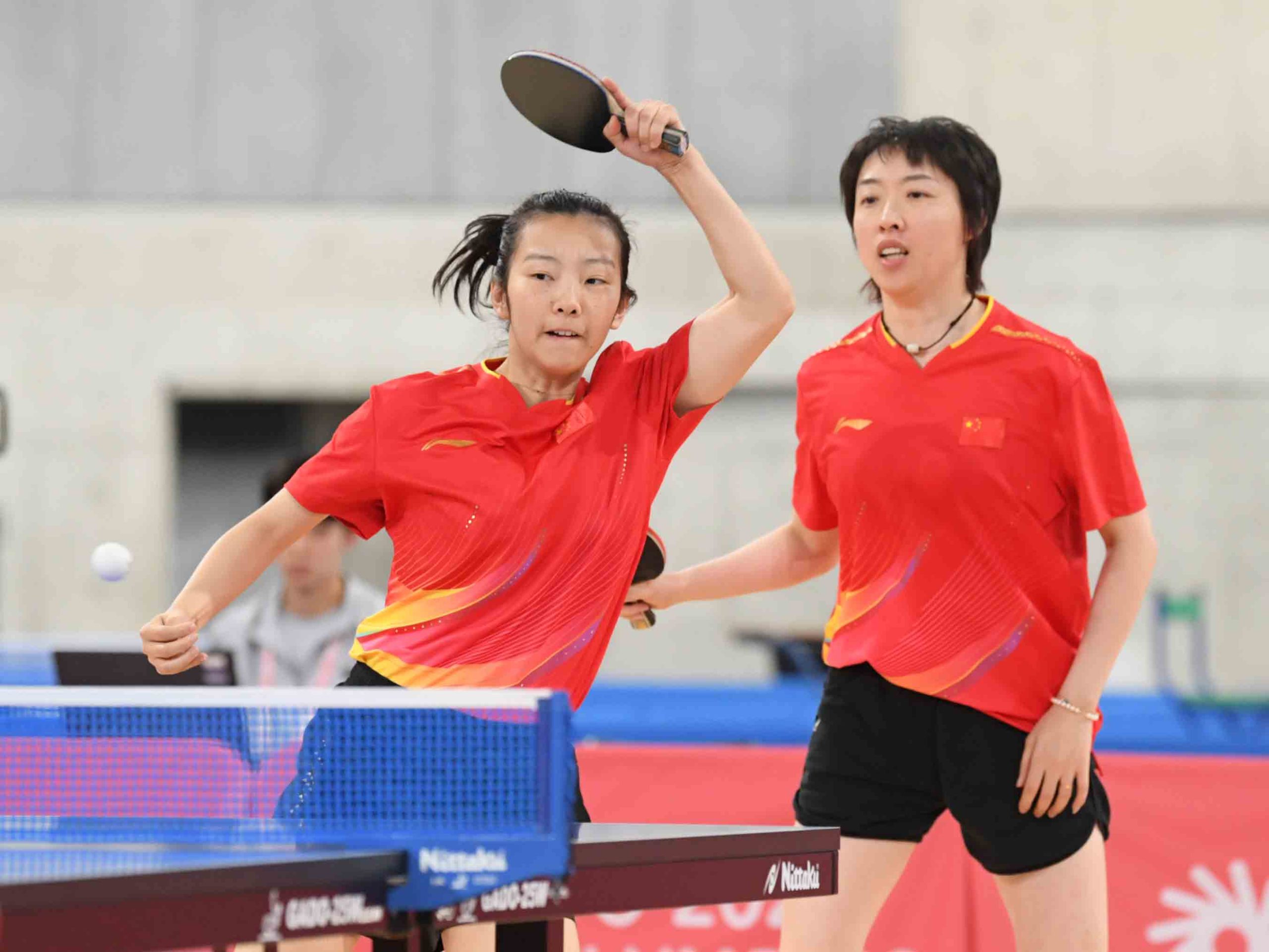 準決勝2試合は中国ペア対チャイニーズタイペイペアの対戦となり、いずれも中国ペアが勝利。女子ダブルスに続いて男子ダブルスも同士討ちとなったが、こちらもワンサイドゲームで決着。1ゲーム目の序盤こそもたついたが、ワン・コン/ティエン・ジーピンが的確にコースを突いた連打で圧倒して優勝を決めた。ワン・コンは混合ダブルスに続き、今大会2つ目のタイトルを手にした。