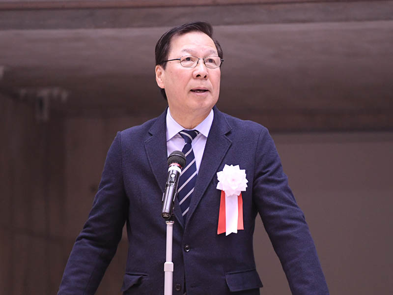 歓迎のことばを述べた石川県卓球連盟会長の加藤真一氏