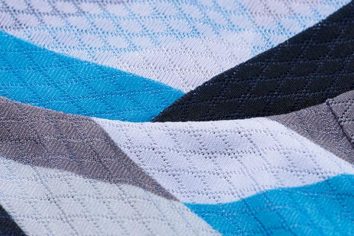菱形(ひしがた)のパターンを密集させた生地が特徴の「イタリアラグビーメッシュ」を採用。薄めで肌触りも快適