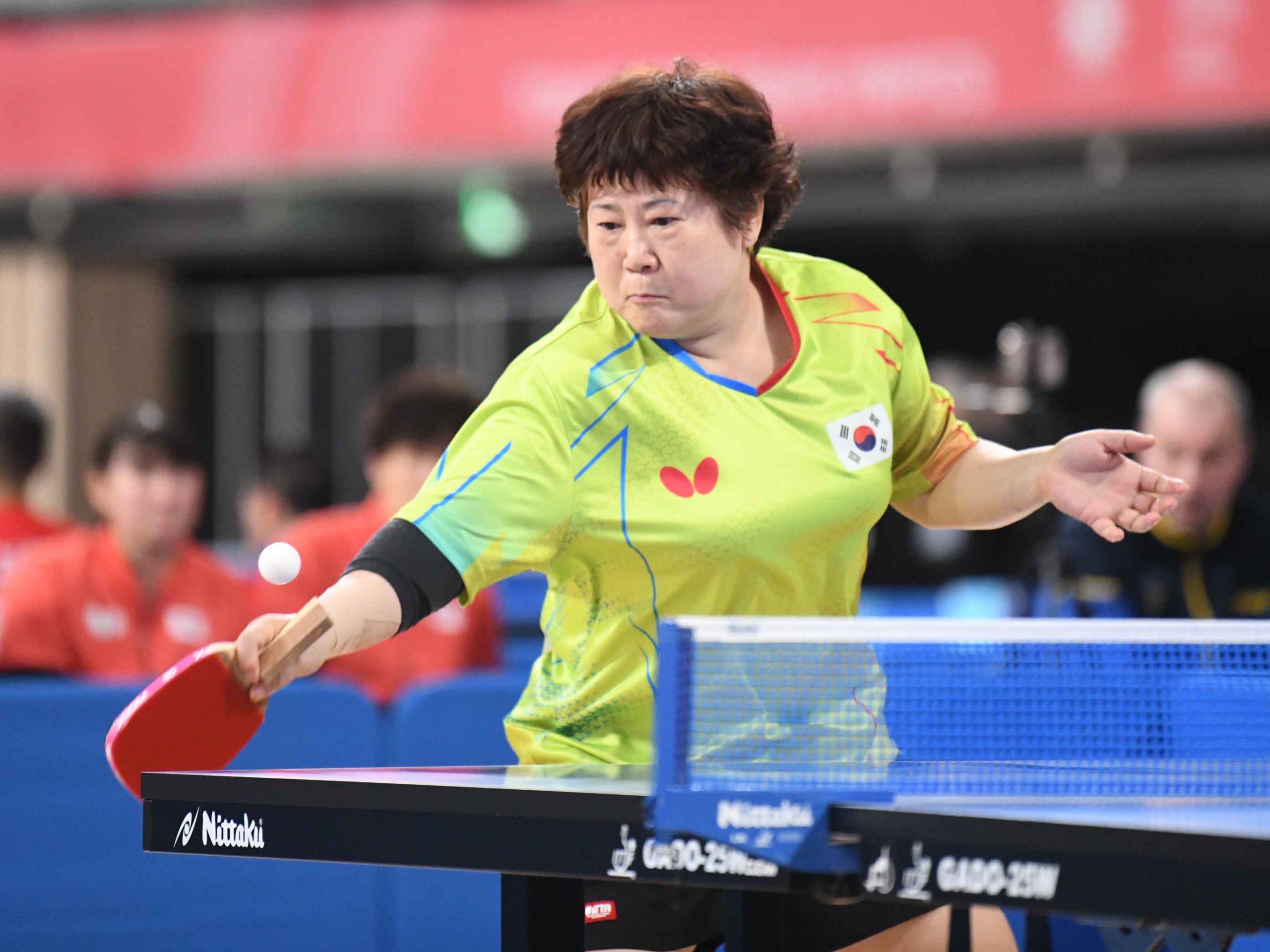 続く第2試合はマカオを圧倒して迎えた第3試合の韓国戦。山田萌がストレートで勝利すると、亀澤も続き決勝リーグ進出にあと1勝に迫る。一気に決めたい日本は3番に山田瑞が登場したが、61歳のハ・ミヨンに思わぬ大苦戦。片面ペンホルダーのハ・ミヨンのサービスやストップ、フォアのスマッシュに苦しみながらゲームカウント2-1の4ゲーム目にマッチポイントを握ったが決めきれずの最終ゲームに突入。最終ゲームも点差が離れず試合が進み、山田瑞が再びマッチポイントを握るも追いつかれたが、なんとか逃げ切って地元開催のデフリンピックで2つ目のメダル獲得を確定させた。