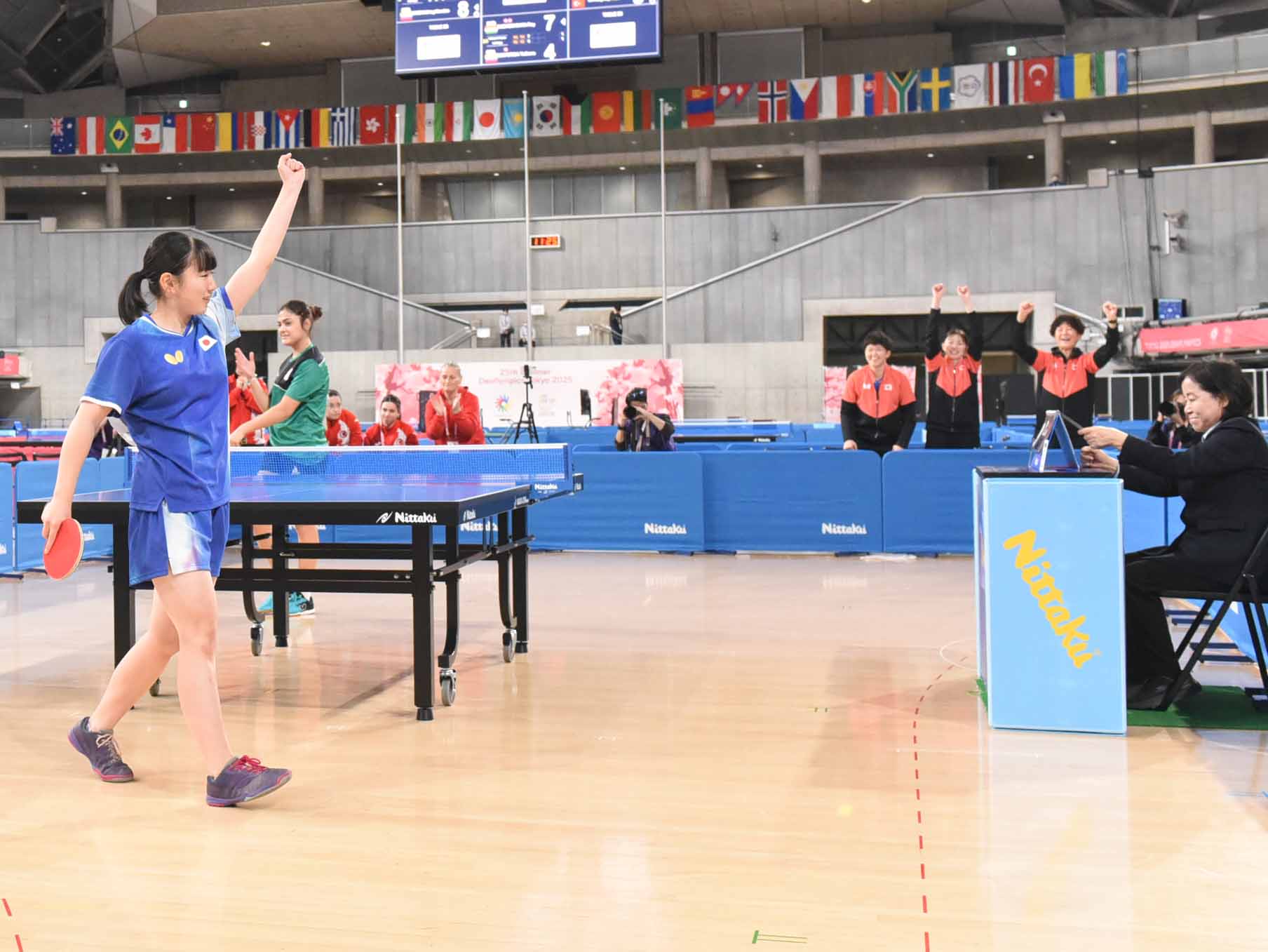 東京体育館で開催されている東京2025デフリンピック卓球競技は今日からは男女団体戦がスタート。男子に続いて女子も予選リーグを突破し、明日の決勝リーグ進出、そしてメダル獲得が確定した。