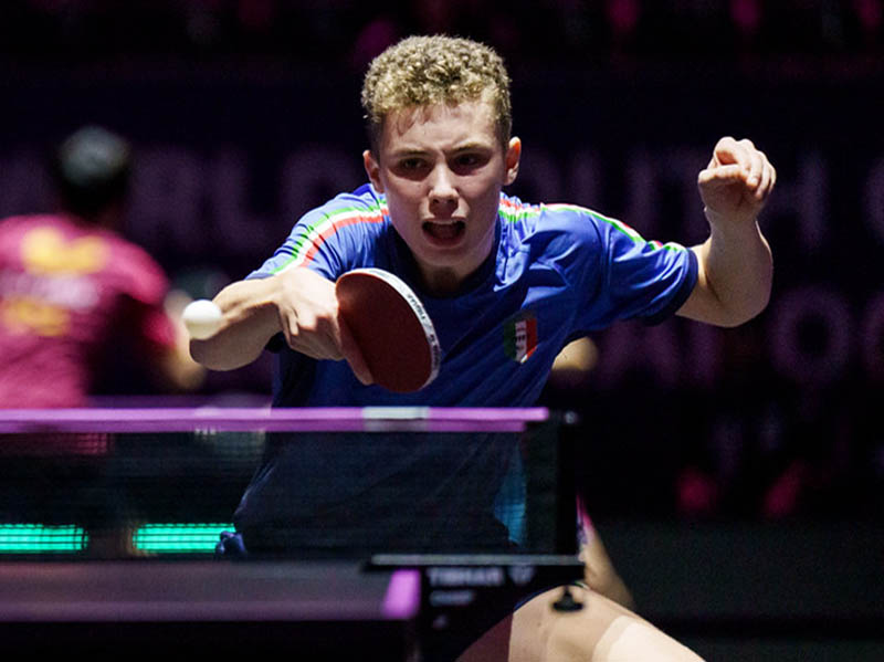 日本戦、中国戦で連続して2点を叩き出したU15イタリア男子のエース・ファーゾ。荒々しい卓球が魅力だ