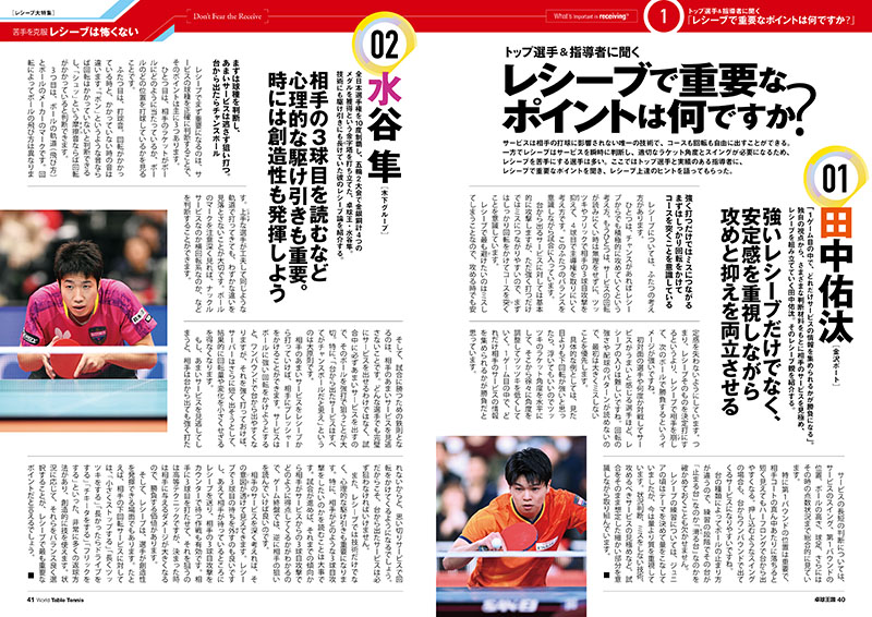卓球王国最新号2月号では「苦手を克服する」というテーマで「レシーブは怖くない!」の特集を組んでいる。