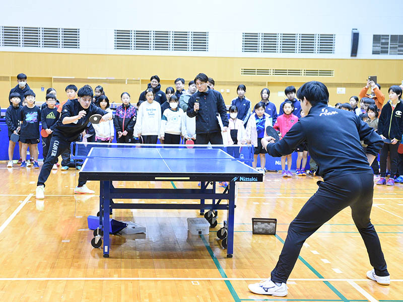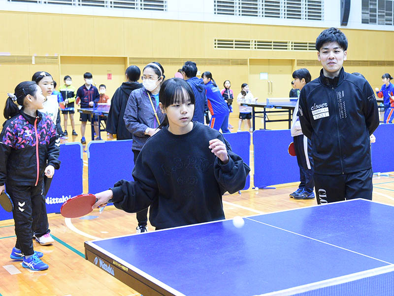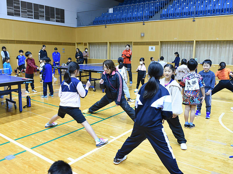 初心者クラスの参加者には、楽しく体を動かすプログラムも提供。卓球選手である前に、運動選手としての能力も大切です