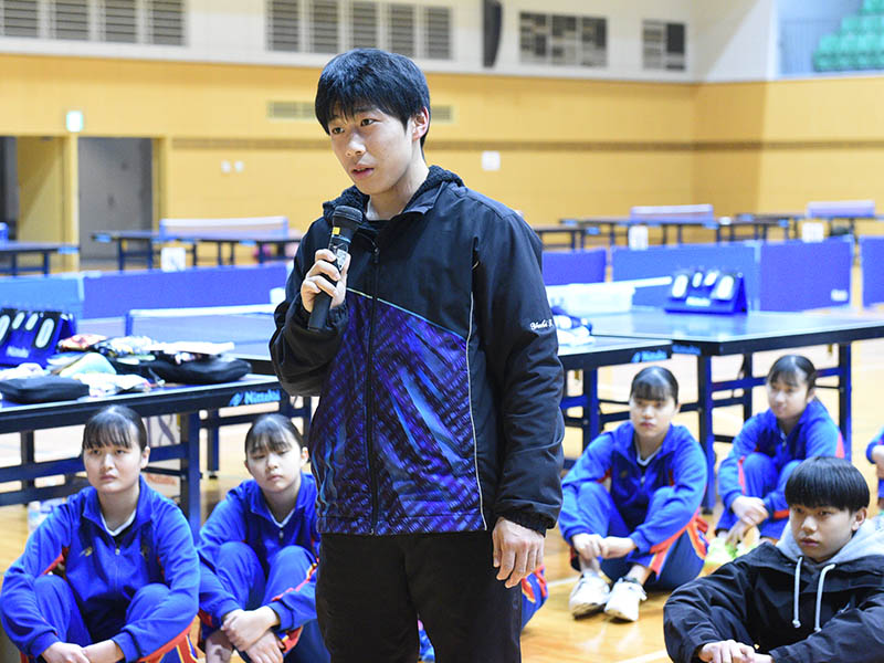 元トップ選手と話せる貴重な機会に、何度も質問をしていた福島雄陽選手(高松卓球クラブ)。こういった向上心は大事です