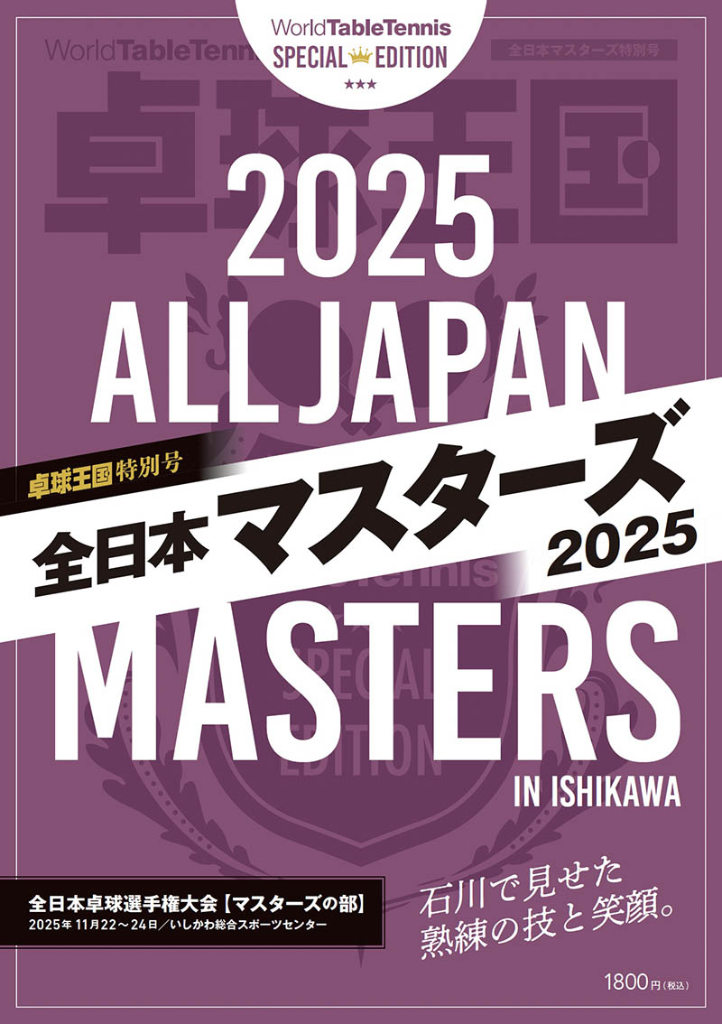 2025年12月26日に発売された「卓球王国特別号 全日本マスターズ2025」。これは、25年11月22〜24日に石川県で開催された「全日本卓球選手権大会(マスターズの部)」における戦いの記録と、総参加者の90%を超える選手のプレー写真を収蔵した永久保存版のメモリアルブックだ。
