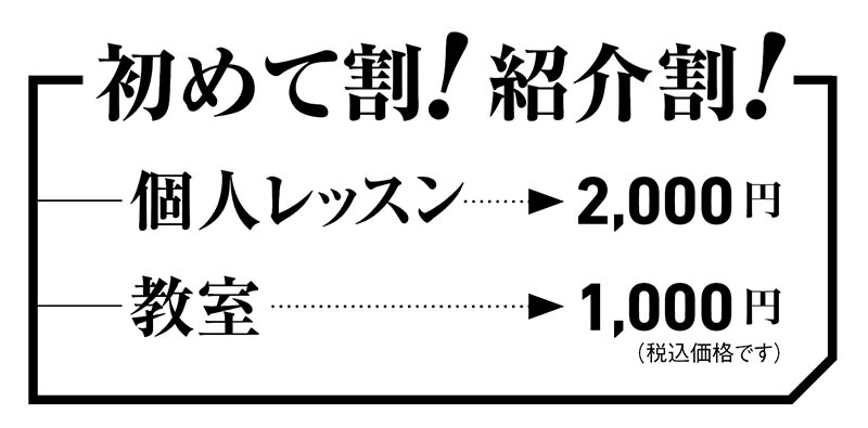 ・個人レッスン1回と教室1回、どちらも割引でご利用頂けます。