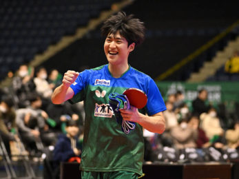 ビクトリーマッチで金沢・松平健太を下した岡山・郝帥