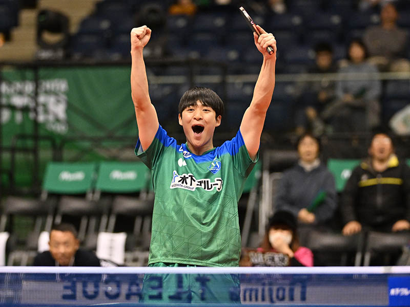 男子は木下マイスター東京と岡山リベッツがホームゲームを実施。岡山・笠岡総合体育館で試合を行った岡山は、金沢ポートに3-2で勝利、静岡ジェードには1-3で敗れたが、2試合で勝点3を加算した。岡山は3-2勝利の10日の金沢ポート戦では、ダブルスと英田理志が1・2番で勝利後、金沢に3・4番を奪われ2-2とされたが、4番に続きビクトリーマッチに登場の郝帥(ハオ シュアイ)が金沢・松平健太に11-7で勝利しチームの10勝目を決めた。