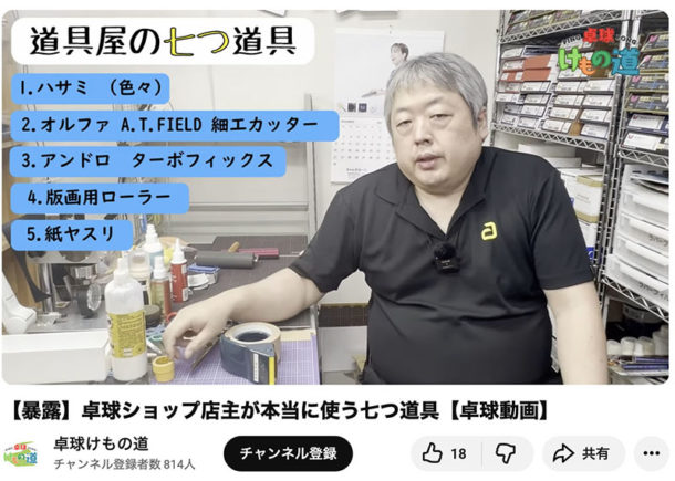 その真中さんは、卓球ショップの2階を改装して卓球場を作り、中学生のグループレッスンなど卓球教室も行っている。また、豊富な用具の知識を活かして、youtubeチャンネル『卓球けもの道』でも定期的に動画をアップしている。