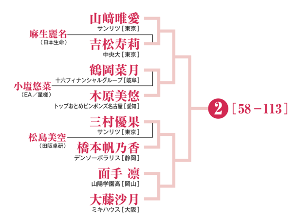 昨年の国際大会で大活躍した橋本帆乃香は、6回戦で大藤と当たる組み合わせ。先日のWTTチャンピオンズ ドーハを故障で欠場し、体調面が心配だが、世界を魅了した華麗なカットプレーで会場を沸かせたい。また、昨年の全日本ホープスで優勝し、Tリーグでも活躍する「スーパー小学生」松島美空の活躍も楽しみだ。