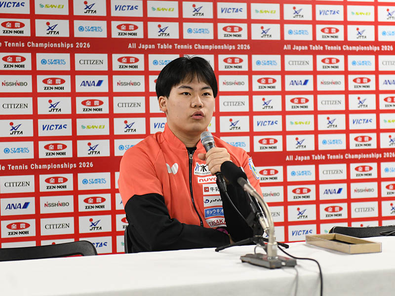 前回大会、2025年の男子シングルス王者・松島輝空(木下グループ)が、明日(1/22)から始まる自身の試合に先駆けて、記者会見を行った。