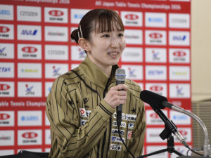 「やはりペンらしさ、特徴を活かしてプレーしていきたい。卓球を始めた頃は中ペンで裏面も貼っていたんですけど、小3くらいから日ペンの片面になりました。フォアの威力が出したかったのと、お父さんが日ペンだったので自分も日ペンになりたいなと思いました。今は裏面は貼るつもりはないですね」(堀)