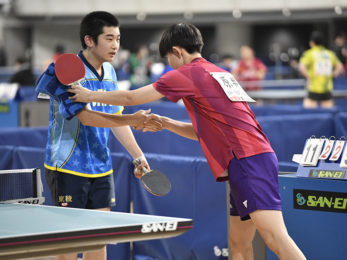 ジュニア男子で福島の佐藤侑大(福島東稜高)が強敵・原井敢田(愛知・愛工大名電高)を競り合いの末に下した。ゲームオールの11−9で勝利した瞬間は感極まった佐藤だったが、そのあとに喜びのガッツポーズを見せた。しかし、2−0とリードしてから2−2に追いつかれた試合展開でもあり、試合後の佐藤に笑顔はなかった。