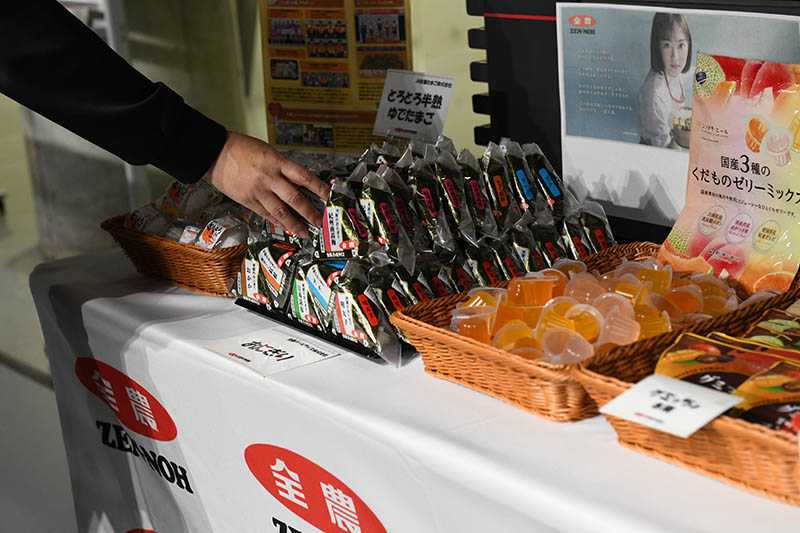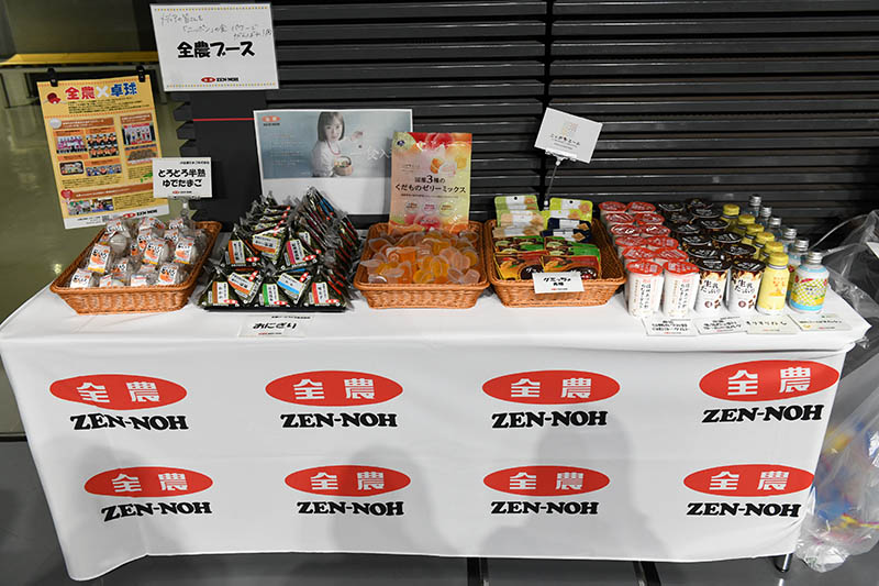 2011年から日本代表のトップパートナーを務める全国農業協同組合連合会(全農)は、主要大会への協賛や海外遠征時の食事提供など、「食」を通じて大会を支えている。今大会でもメディア席に全農ブースが設置され、おにぎりやゼリー、飲み物などが用意されるなど、取材にあたるメディア関係者の力となっている。