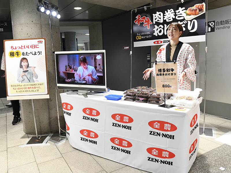 また、1階入口付近の全農ブースでは、全農所属で元日本代表の石川佳純さんが出演する「和牛」のPR動画を放映。その隣では「博多和牛 博多肉巻きおにぎり」の販売も行われている。観戦で小腹が空いた際には、日本の食のおいしさを味わえるスポットとして、ぜひ立ち寄ってみてほしい。