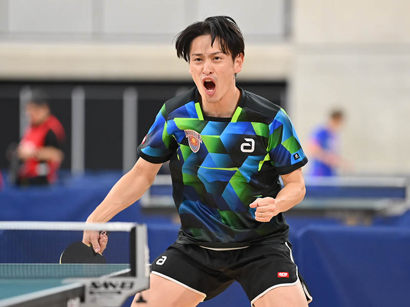 今大会には埼玉県予選から勝ち上がってきた、元日本代表・全日本2位の実績を持つ大島。かつての所属先・木下マイスター東京時代に、後輩として可愛がっていた川上との試合は、白熱のシーソーゲームになった。最後は、ゲームカウント2-3と追いつめられながらも、自分のペースを崩さなかった川上に軍配。