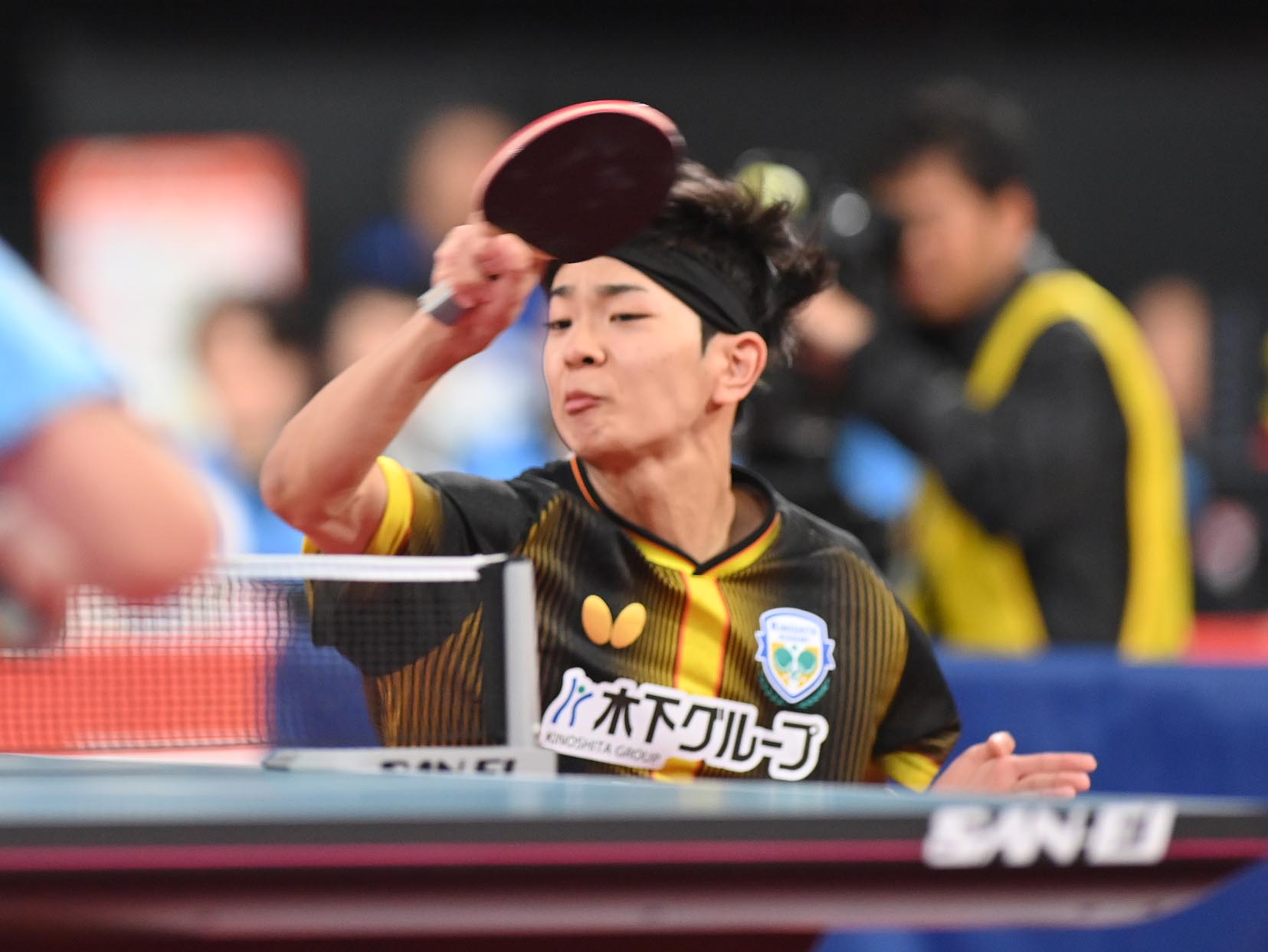 女子シングルス準々決勝のあとに始まった、男子準々決勝。最初の2試合は、前回王者の松島輝空(木下グループ)、前回3位の谷垣佑真(愛知工業大)が勝利し、2選手は昨年に引き続き準決勝進出を決めた。