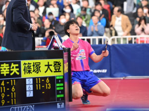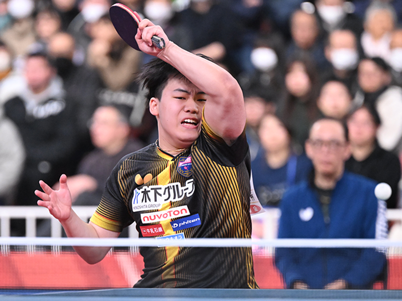 男子シングルス準々決勝で、吉村真晴(SCOグループ)に4ー1で勝利し、今年も準決勝へ駒を進めた松島輝空。