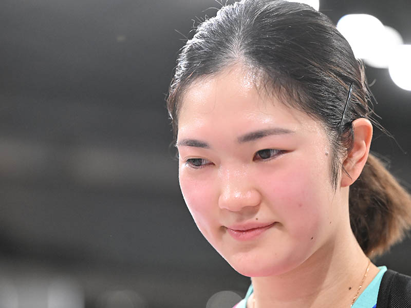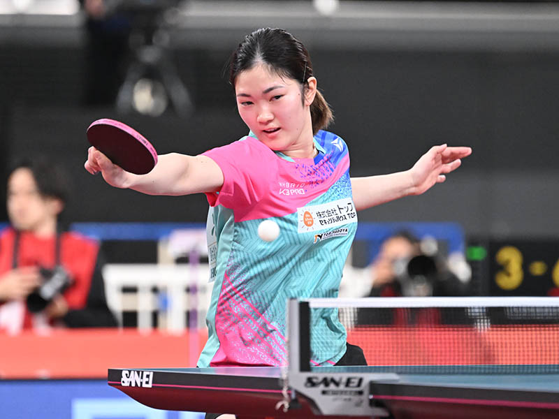 早田ひな(日本生命) 4、-5、5、-9、-8、-8 木原美悠(トップおとめピンポンズ名古屋)