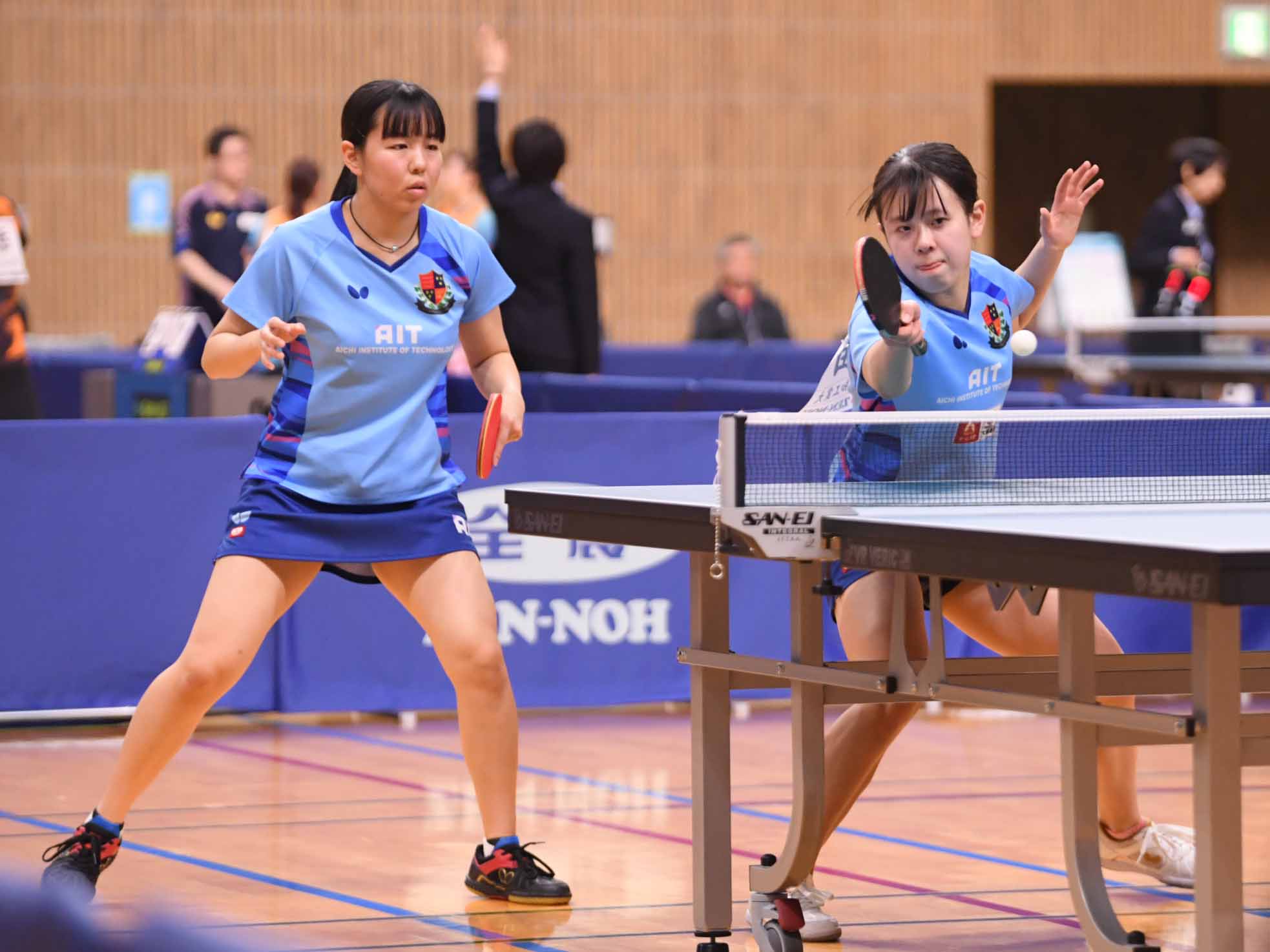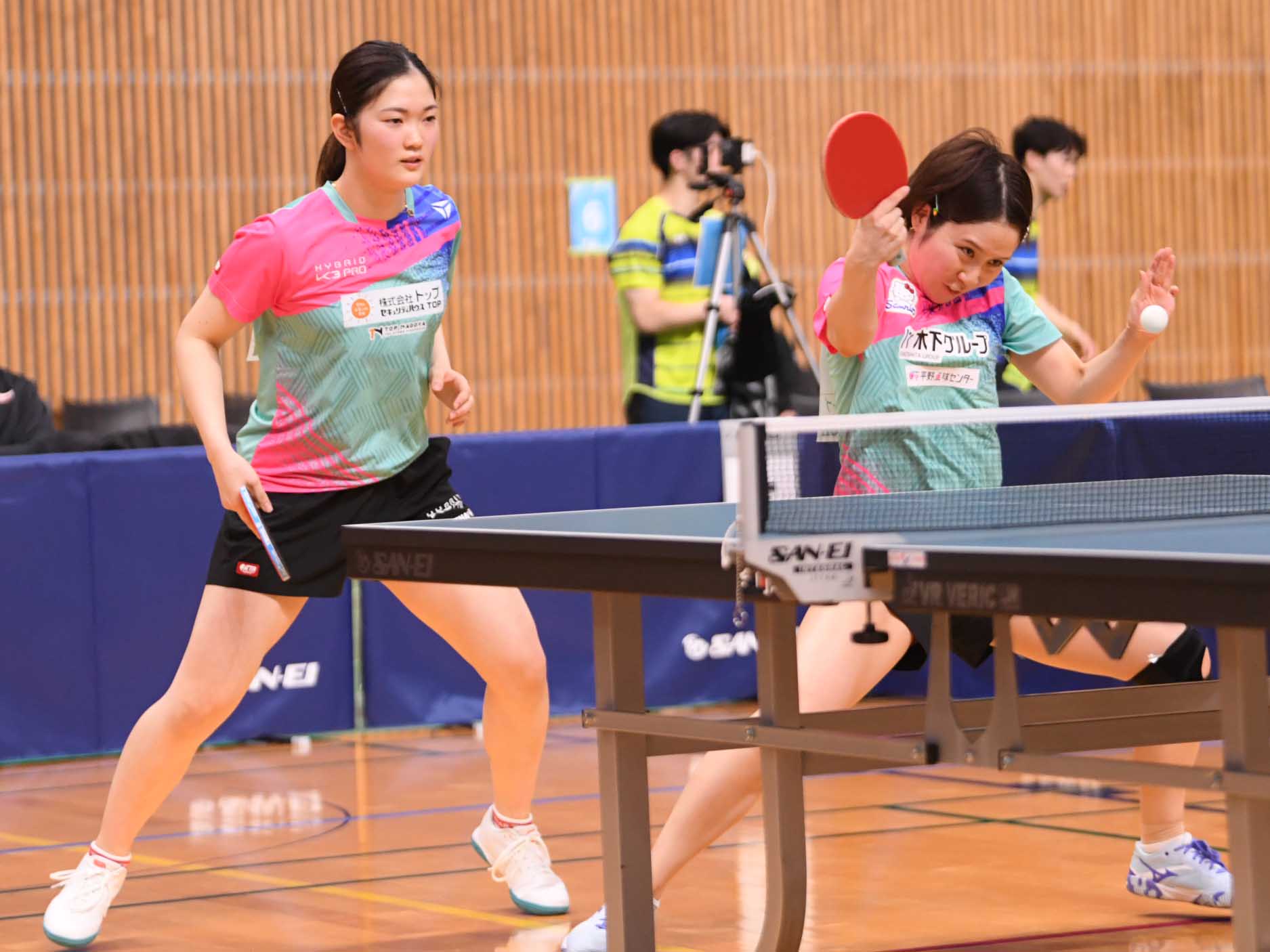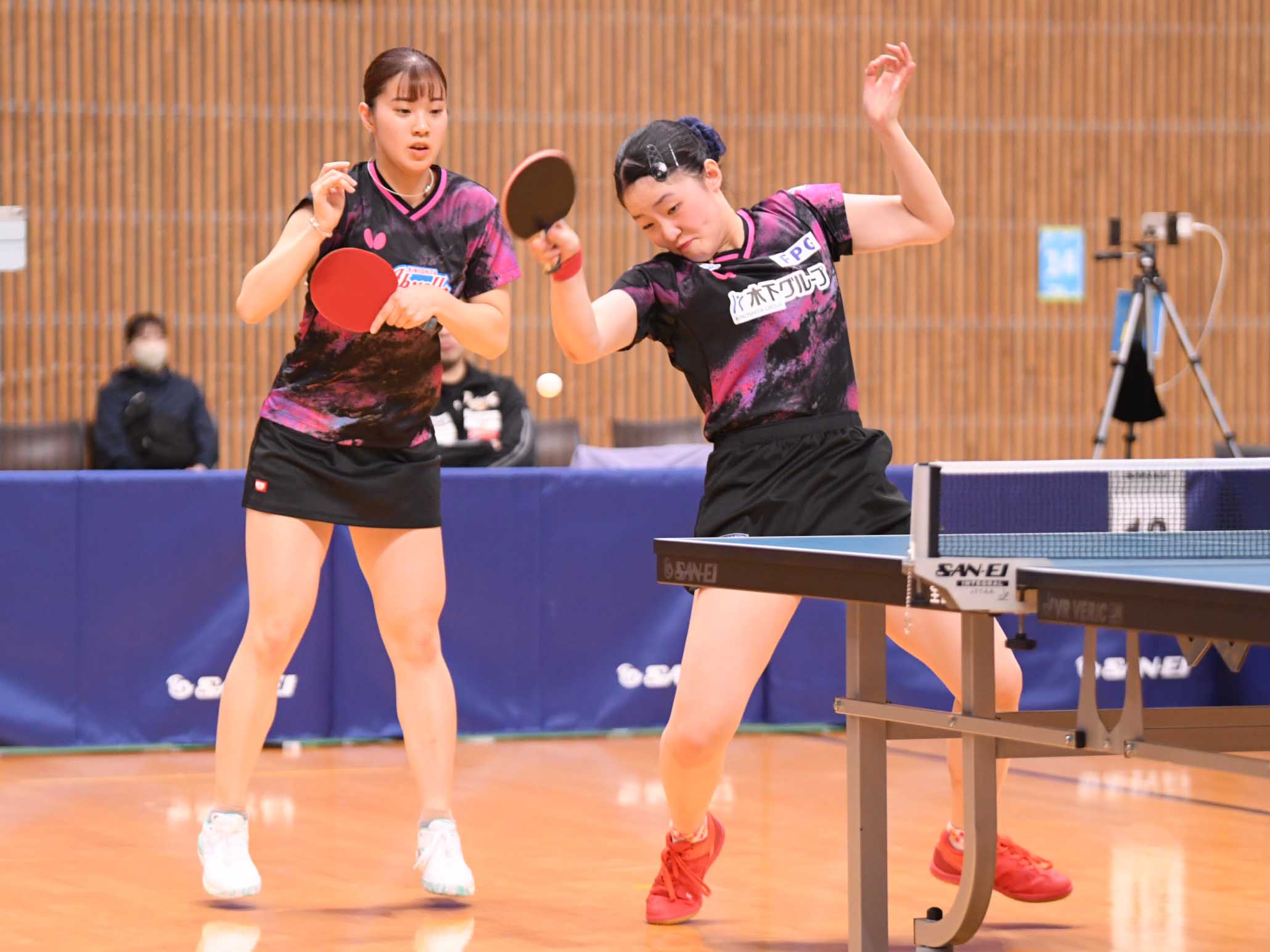 平野美宇/木原美悠(木下グループ/トップおとめピンポンズ名古屋) 5、7、-2、12 青木咲智/高森愛央(四天王寺高)