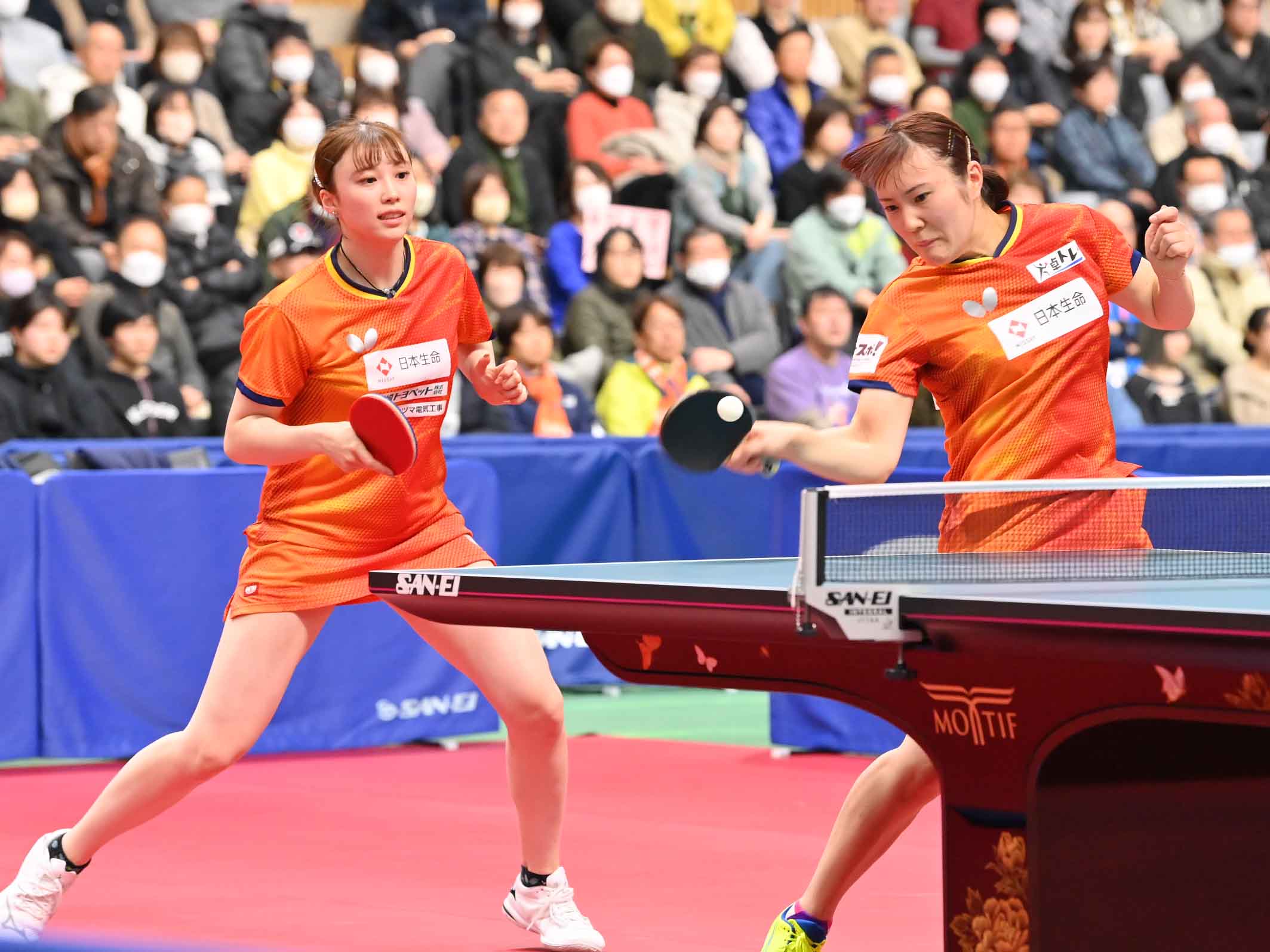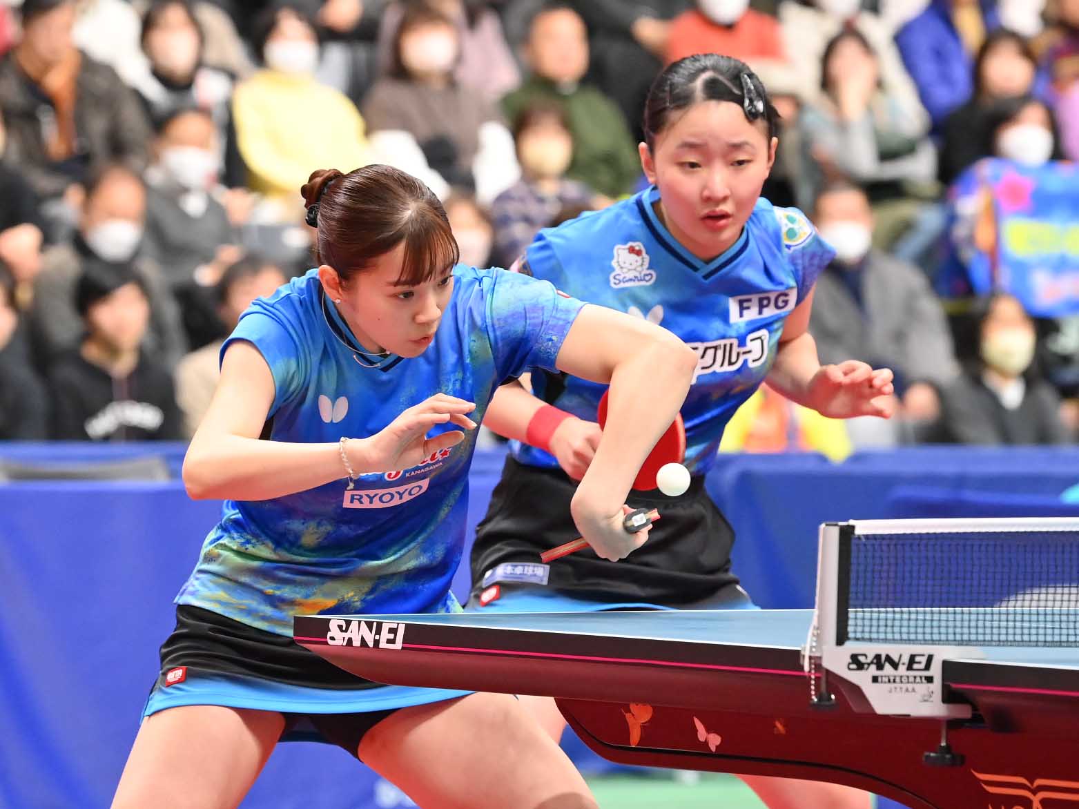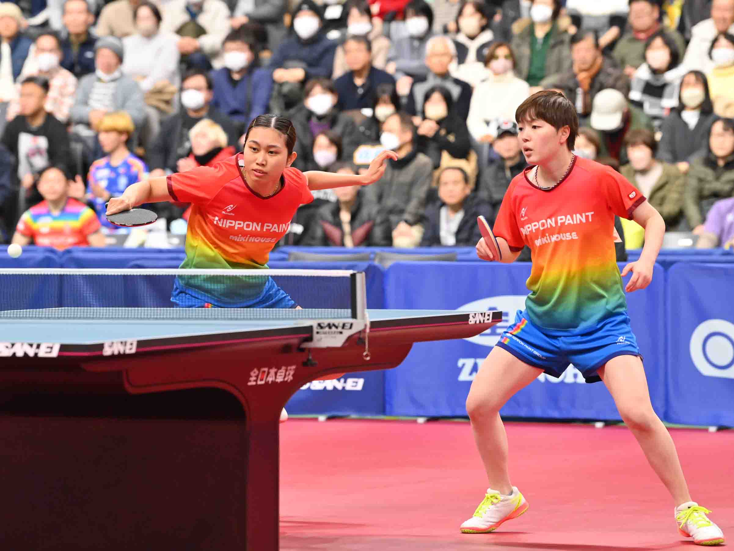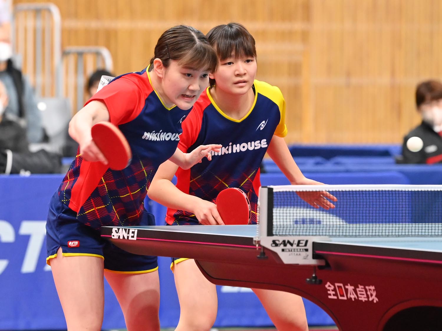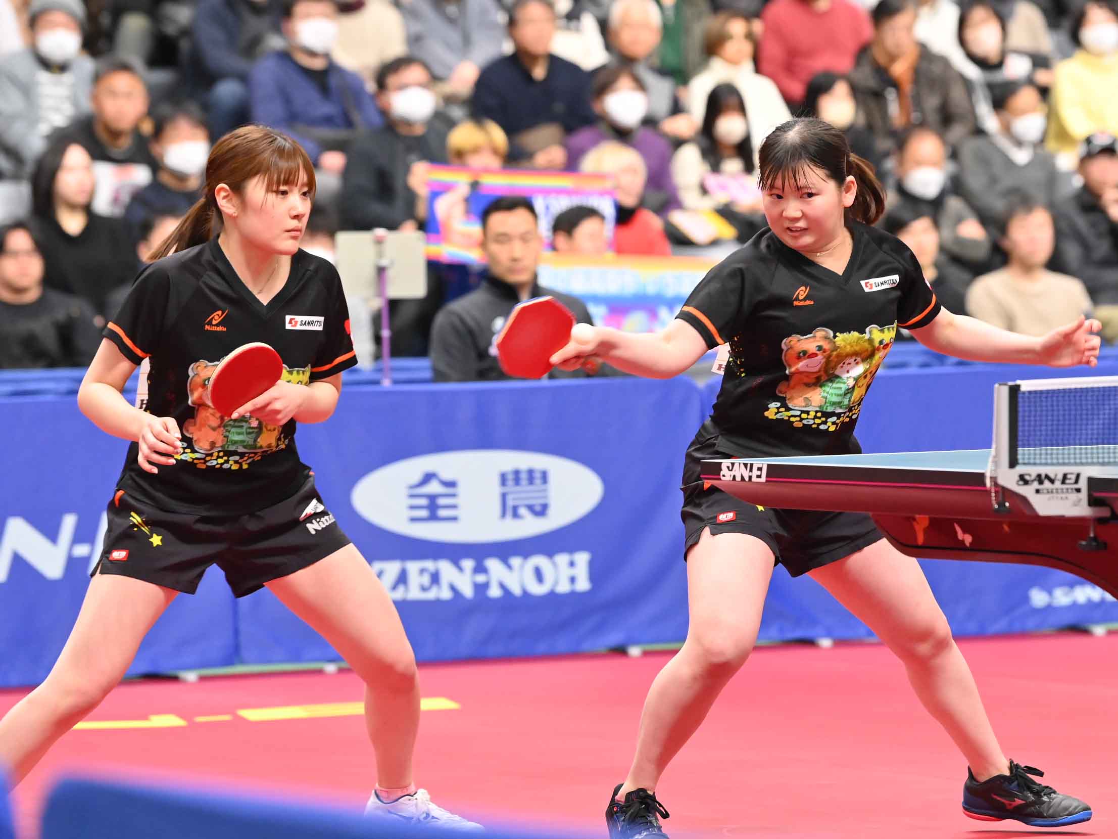 平野美宇/木原美悠(木下グループ/トップおとめピンポンズ名古屋) 5、4、-8、6 佐藤瞳/芝田沙季(日本ペイントグループ)