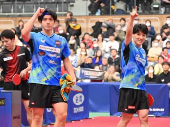 愛知・スカイホール豊田で開催されている全農杯 全日本卓球選手権ダブルスの部は大会最終日。女子ダブルス準決勝に続いて男子ダブルス準決勝が行われ、決勝進出ペアが決定した。