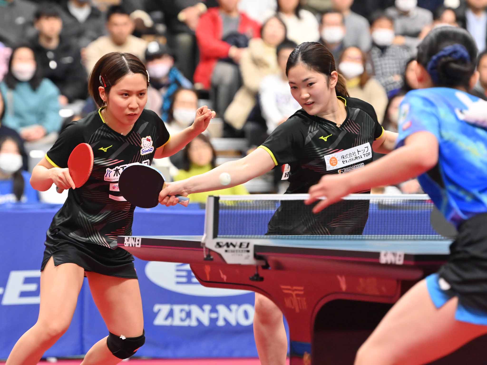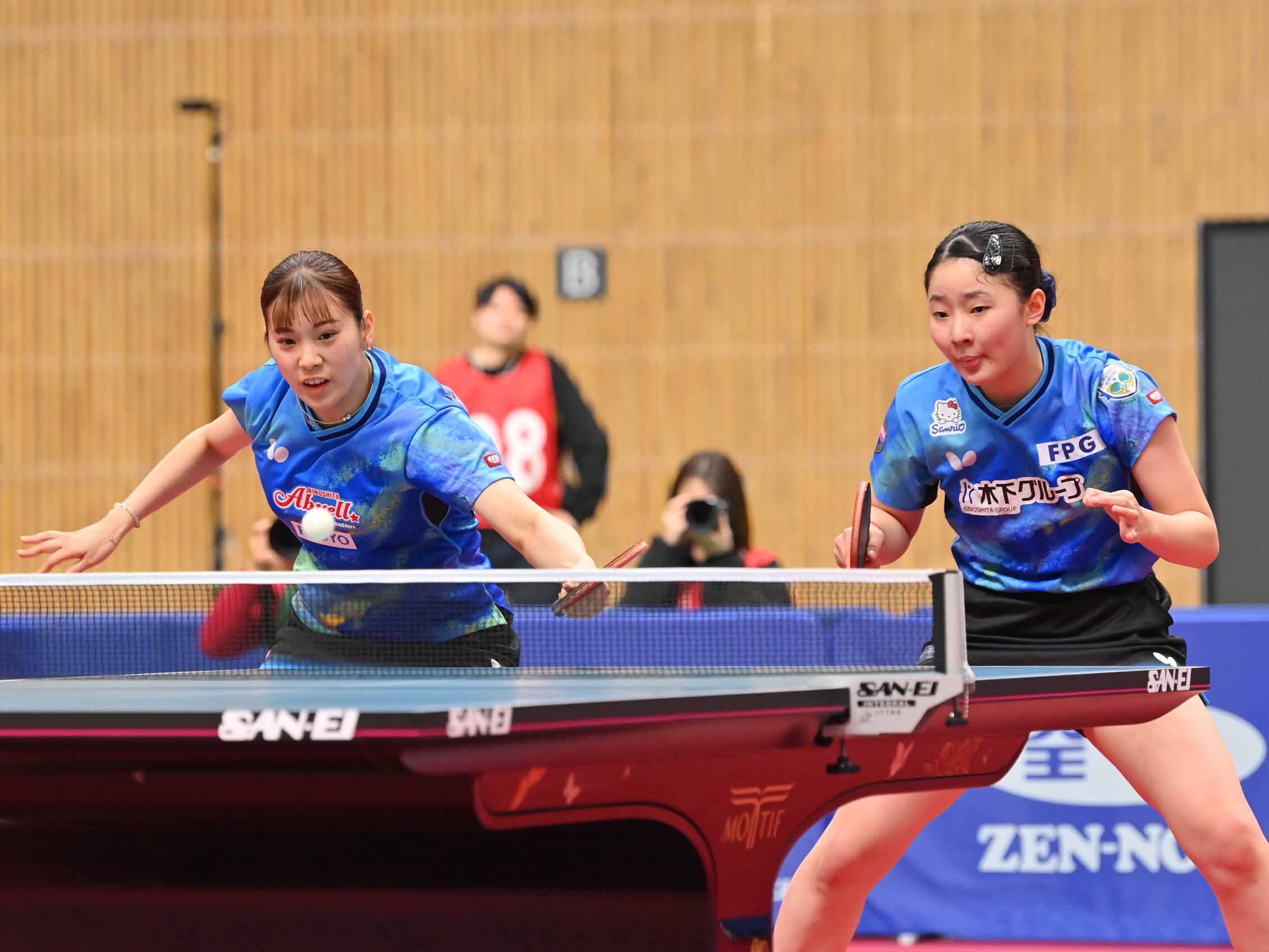 愛知・スカイホール豊田で開催されている全農杯 全日本卓球選手権ダブルスの部は大会最終日。混合ダブルス決勝に続いて女子ダブルス決勝が行われ、張本美和/長﨑美柚が頂点に立った。