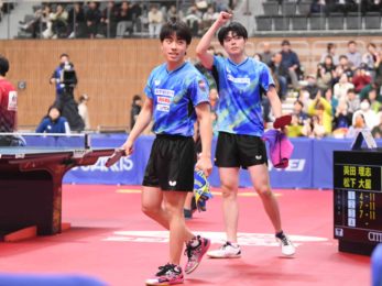 愛知・スカイホール豊田で開催されている全農杯 全日本卓球選手権ダブルスの部は大会最終種目の男子ダブルス決勝が行われ、篠塚大登/谷垣佑真が優勝を飾った。
