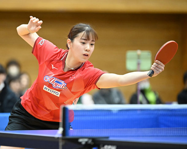 髙森愛央(四天王寺高)12、7、-9、5 木原美悠(トップおとめピンポンズ名古屋)