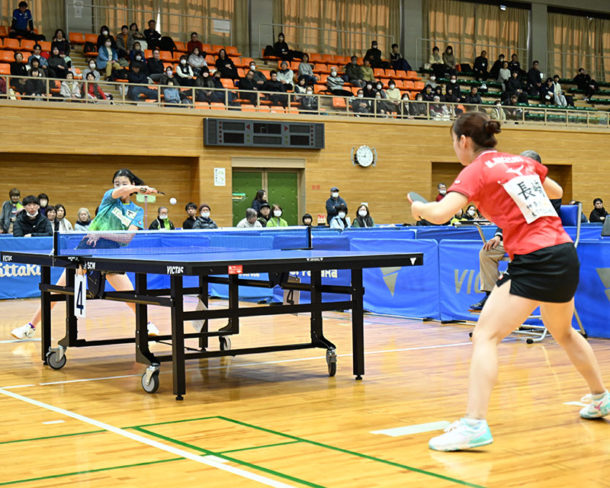 面手は準決勝で優勝候補筆頭の長﨑の質の高いドライブを上から弾き返すような厳しいバックドライブで攻めると、「強化している」と優勝後に語ったフォアドライブを両コーナーに突き刺した。
