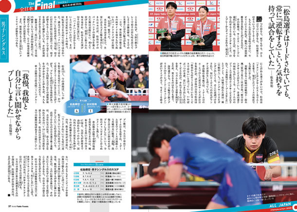 そして今回、創刊から通算31回目となる全日本特集が、今年も大ボリュームで掲載される。一撃必殺のバックドライブで会場をどよめかせ、男子シングルス2連覇を飾った松島輝空。ジュニア4連覇、そして前人未到の「4冠」を達成した張本美和。全日本に新たな時代を切り拓く、「無双」の若きチャンピオンふたりの足跡をたどる。