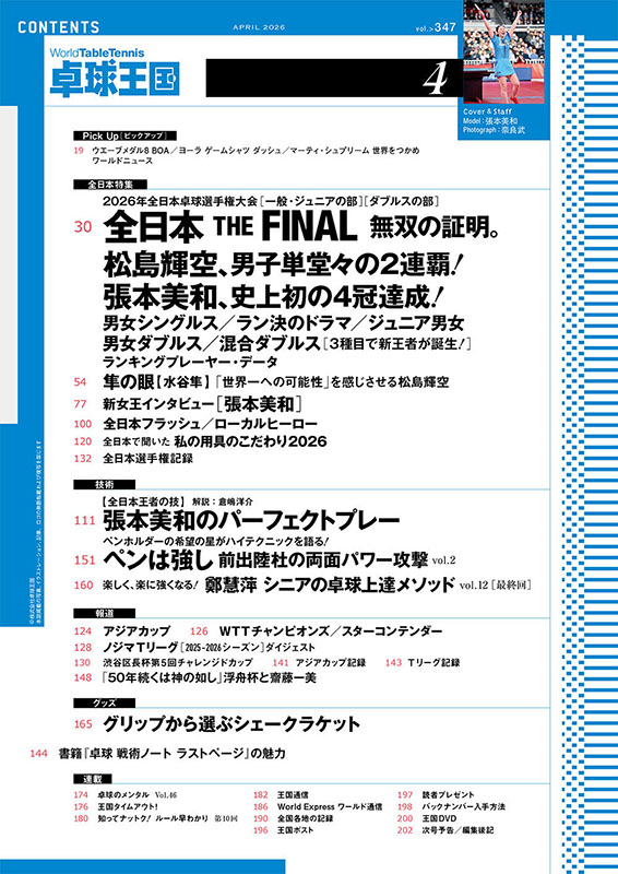 本日、2月20日(金)に発売された卓球王国2026年4月号は、毎年恒例の全日本選手権特集号だ。
