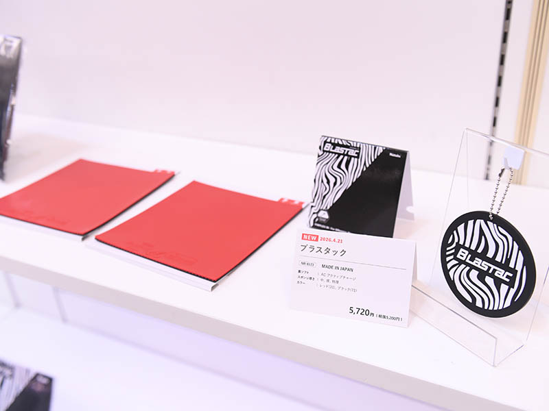 今シーズンのニッタクのイチオシラバー『ブラスタック』。新開発のカーボンブラックスポンジを搭載した「狙いどおりのボールを出せる」裏ソフトラバーで、全国大会への出場を目指す中級者をメインターゲットにしている