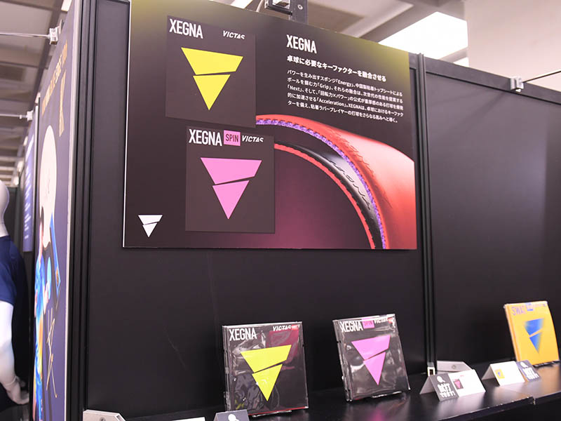 アライアンス契約を結ぶXIOMブランドのラバーも展示。『VEGA O』『ジキル&ハイド』『OMEGA 8』の各シリーズ
